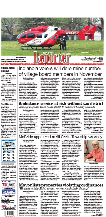 Funeral service were held April 15 at the Sidell United Methodist Church with Joe Eakle officiating. Burial, alongside Cody, was in the Fairview Cemetery in rural Sidell. Memorials may be made to the Sidell United Methodist Church. Robison Chapel, Catlin, Illinois is handling the arrangements. Online condolences at www.robisonchapel.com.